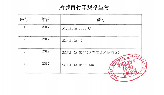 新华网北京9月15日电 日前,美利达自行车(中国)有限公司(以下简称美利达公司)向国家质检总局备案了召回计划,将自即日起,召回部分2016年3月~2017年7月期间制造的部分SCULTURA(斯特拉)自行车,共涉及4个型号产品:斯特拉1000-CN、斯特拉4000、斯特拉Disc 400、斯特拉5000(详情见附件),中国大陆地区受影响的自行车数量为599辆。