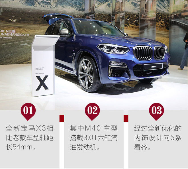 据了解,全新一代宝马X3将于明年4月在中国进行投产,并针对中国市场推出长轴版车型。