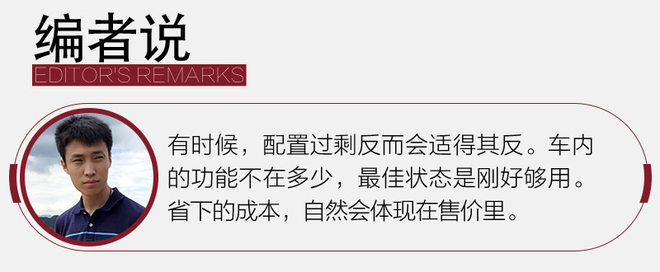 在激烈的竞争中,很多车企喜欢通过“堆砌”配置来彰显自己的产品力。但是对于消费者而言,盲目选择一些自己几乎用不到的配置而增加购车预算,其实并不可取。我选车时,会根据自己日常使用场景来衡量配置水平,配置够用即可。更重要的是,很多实用配置一定要好用,不然还不如没有。