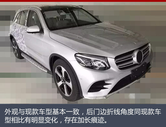 根据之前曝光的疑似奔驰GLC长轴版谍照来看,外观上新车与现款在售车型基本保持一致,但车身侧面,后门边折线角度同现款车型相比有明显变化,此外迎宾踏板上的黑色防滑胶垫的数量组也有所增加,以此推测这些配置和设计有望为GLC长轴版的设计。