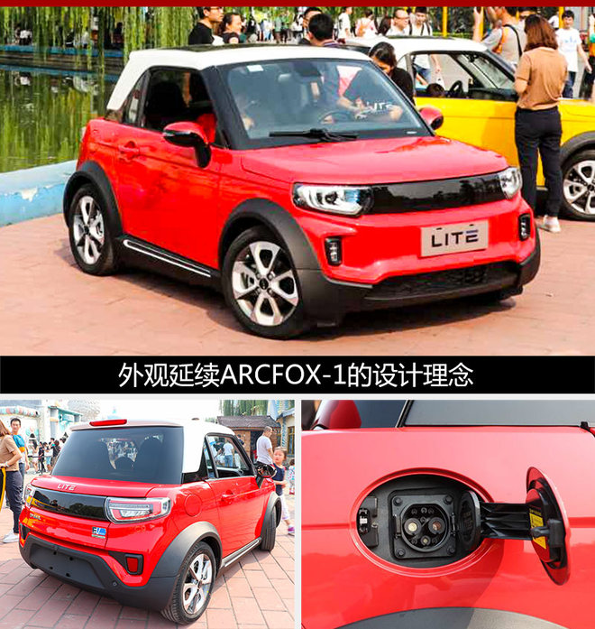 LITE外观设计上极大程度的继承了ARCFOX-1的设计理念,类似K-Car的设计风格让这款车显得十分与众不同。外观方面,新车整体造型方正,线条硬朗。前脸头灯组内配有LED日间行车灯,大灯之间配有LED文字显示屏。车身下方采用黑色包围,可降低后期维护成本。