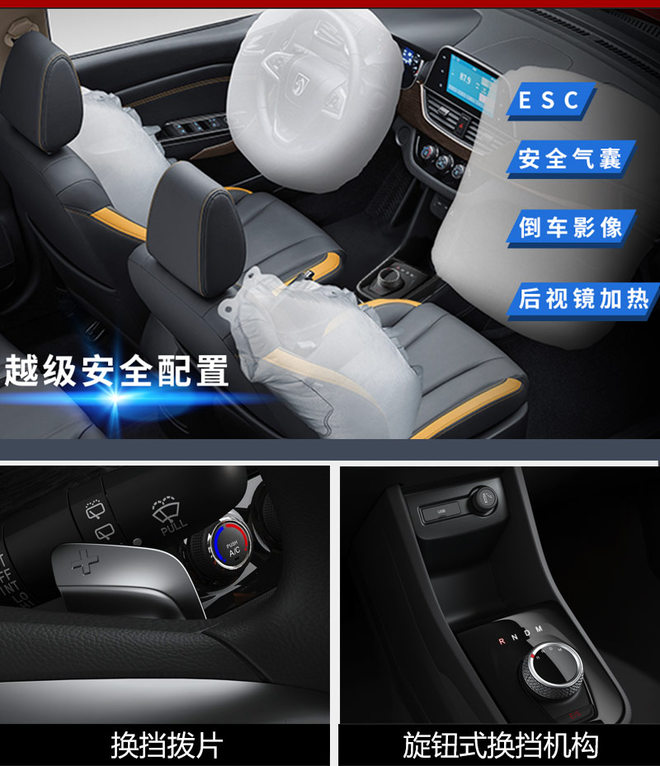 新车内饰设计与在售车型基本保持一致,采用木纹饰板与钢琴烤漆面板装饰,提升内饰质感。中控台配备8英寸悬浮式液晶屏,并集成蓝牙、倒车影像与导航系统。此外,310自动挡车型换装全新的旋钮式换挡机构,三辐式方向盘后方配备换挡拨片,提升操作便利性。配置方面,新车配有电动天窗、定速巡航、四安全气囊以及后视镜加热等功能,并全系标配ESC车身稳定系统,保障行车安全。