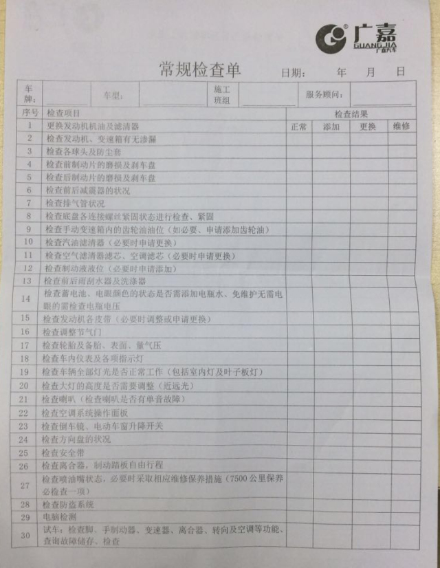 技师向教授介绍,在嘉实多护车保养站做保养,除了更换机油机滤以外,还会对车辆发动机、变速箱是否渗油漏油,制动系统,减震器等重要部件进行检查,并随时向车主反馈车况。教授看了常规检查单,多达30项检查可比部分4S店还专业。