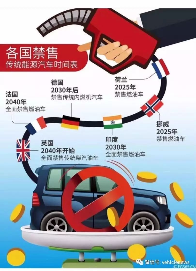 据不完全统计,欧洲已有7个国家设立燃油车禁售时间表:挪威、荷兰定在2025年,瑞士、比利时定在2030年,法国、英国定在2040年,瑞典定在2050年。与此同时,刚刚过去的2017法兰克福车展上,捷豹路虎、奔驰、沃尔沃都针对全面电气化进行了表态。