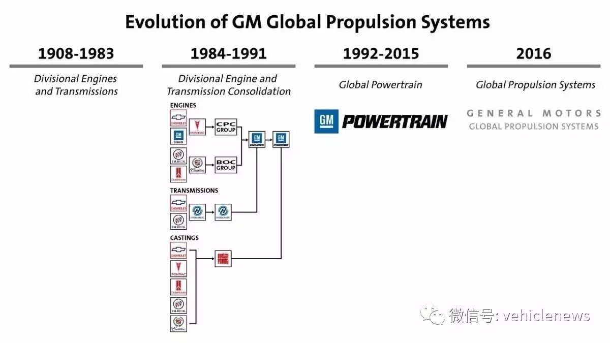 通用汽车动力系统部门变更名称共发生四起,第一起是1908年至1983年,这个时候,整车企业对于整车动力系统的理解还基本上定位在发动机是发动机,变速器是变速器,名称为“DivisionalEngines and Transmissions(发动机和变速器部门)”。