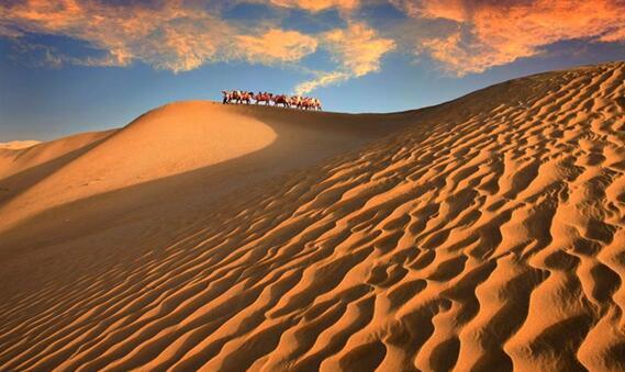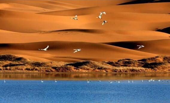 美丽的腾格里沙漠位于内蒙古自治区阿拉善左旗西南部和甘肃省中部边境。南越长城,东抵贺兰山,西至雅布赖山。在这里既可以观赏大沙漠的景色,眺望包兰铁路如一条绿龙伸向远方;又可以骑着骆驼在沙漠上行走,领略一下沙漠行旅的味道。