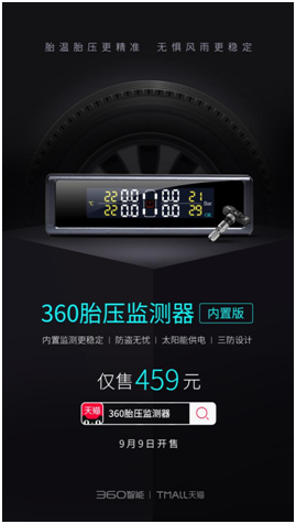 如今,随着社会经济的蓬勃发展,人们消费水平不断提高,从前被人们视为“奢侈品”的汽车已经走进千家万户。汽车为人们出行带来便利同时,也会为人们带来小麻烦,比如胎压异常,胎压异常不仅会造成驾驶异常,还会引发交通事故。360公司继推出360胎压监测器外置版后,日前再次推出360胎压监测器内置版,目前天猫优惠价仅419元。