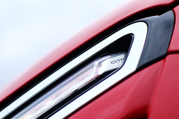 雪铁龙的LOGO整合到了一起(从上图可见),同时在灯带中也隐藏了LED技术的品牌Logo" alt="高位的LED行车灯,巧妙地用灯带设计,与雪铁龙的LOGO整合到了一起(从上图可见),同时在灯带中也隐藏了LED技术的品牌Logo" width="600" border="0" vspace="0" >