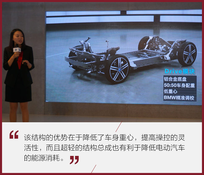 宝马i3采用的是LifeDrive结构,它是宝马首个专门为纯电动汽车设计的结构,它由两个相互独立的单元组成,其中Life模块是碳纤维增强复合材料制成的乘员舱,Drive模块则包括有底盘组件、驱动组件以及高压锂电池等。