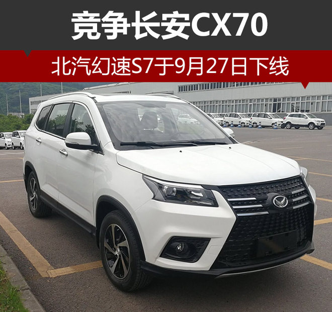 S7是北汽幻速旗下全新7座中型SUV,此前已于成都车展正式亮相。网通社从北汽幻速官方获悉,幻速S7将于9月27日正式下线,并同步开启预售。新车整体线条较为硬朗,前脸采用家族式“X”造型进气格栅,气势十足。动力方面,幻速S7将搭载1.5升涡轮增压发动机。此外,新车上市后将与同一细分领域车型长安CX70展开竞争。