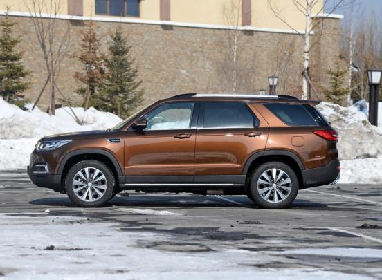 不难发现,从45度的角度来看长安CS95时,挡风玻璃的高宽比似乎存在着一定的问题。另外,引擎盖线条压得过低,整个车头所呈现出来的高宽比接近1:1的形象。所以,从这个角度来看,长安CS95显然会少了这个级别SUV应有的稳重感。