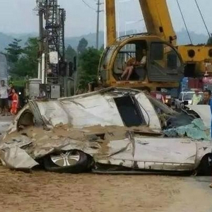 日前在东莞郊区,发作了一次惨烈的严重车祸。一辆装载60吨沙土的大货车侧翻压在一辆SUV上,小车几乎被压成铁皮,车内无人幸存。