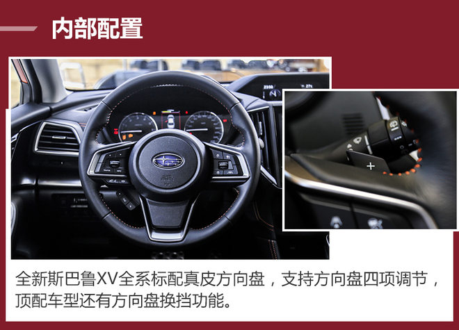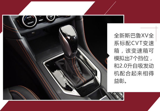 动力总成方面全新斯巴鲁XV并没有给消费者提供选择的空间,2.0升自然吸气发动机+CVT变速箱的组合是斯巴鲁目前主流的动力方案,这里就不多介绍了。