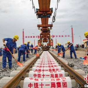 中新网武汉9月21日电 (刘连强 彭特 徐金波)9月21日下午,中铁十一局集团建设者将最后一组25米的轨排铺设在湖北潜江北站,此举标志着江汉平原货运铁路全线铺通,为该条铁路2017年底达到开通运营条件创造了基础。