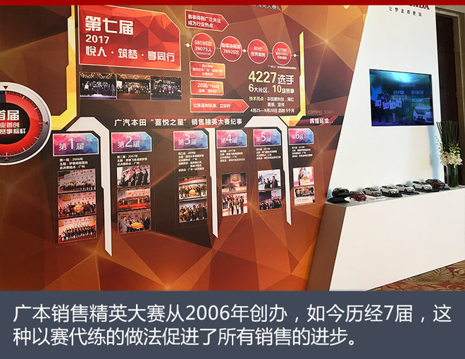 广汽本田销售精英大赛起步于2006年,迄今已举办第七届,这届的比赛是创办以来参加人数最多、覆盖面最广的一次,一共有477家特约店,共计4277位销售参加了此次比赛。