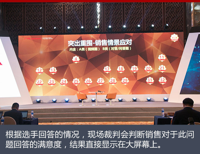 回答完问题后,现场的裁判会针对销售回答的答案表示自己是否满意,结果直接显示在大屏幕上,以示公正公开。
