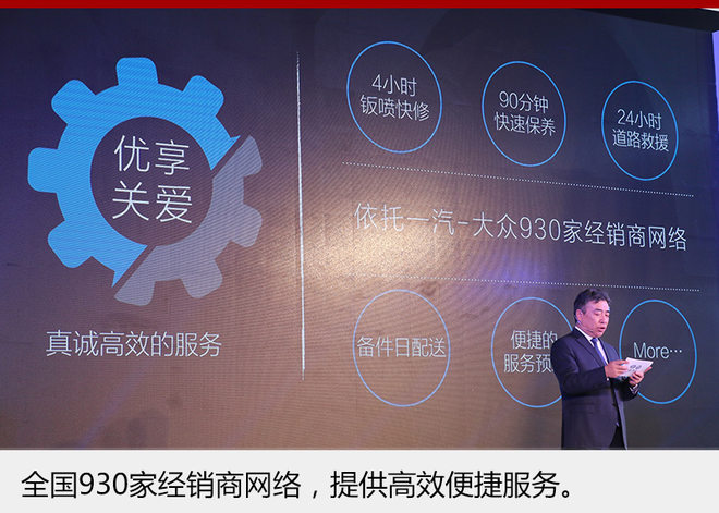 一汽-大众始终保持采用原装备件的传统,为消费者提供最高质量的产品,让用户用的放心。后期推出的优享关爱,进一步提升服务人员的服务质量。4小时钣喷快修、90分钟快速保养以及24小时道路救援,全部依托于一汽-大众全国930家经销商网络对全国客户进行优质服务。