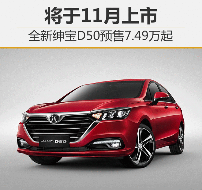 北汽绅宝D50定位紧凑型三厢车,现款车型于2015年年末上市,在售7款车型。网通社从北汽绅宝官方获悉,全新绅宝D50即日开启预售,预售价格为7.48-9.98万元。新车外观革新,进气格栅重新设计,灯组升级为LED光源;车身尺寸略增,轴距加长,沿用现款1.5升发动机,匹配5速手动/CVT变速箱。据此前消息,新车将于11月正式上市销售。