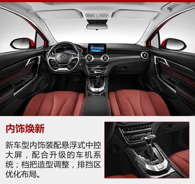 车辆中控采用全新设计风格,装配悬浮式中控屏,部分功能按键改为拨片式;空调出风口“北”字形设计突出品牌特征。档把改为扁平狭长的样式,方便持握;排挡区优化设计,拓展出更充裕的功能按键布局空间。