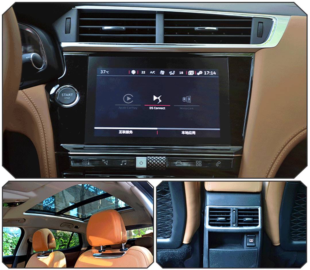 内饰采用了软性材质、皮革进行包裹,乘坐质感也舒适,其中后排座椅靠背能支持角度调节,不过后排的腿部空间则表现一般,在同级别车型当中并没有太大优势。不过DS眼中的“高端、豪华”,并不是什么大空间,他们把更多的心思都放在了设计、用料方面,要表达的是“精致”的豪华,所以我们总是能在法系车身上找到不少惊喜。