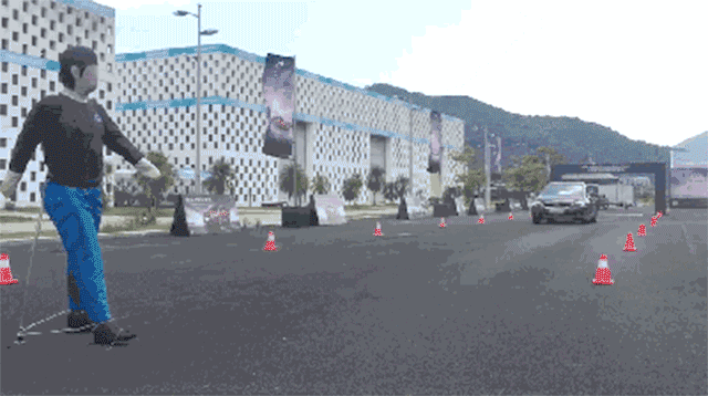 在活动现场,工作人员在道路中央准备了一个假人,我们都打赌它该不会被撞飞吧?可是那部DS 5LS开动之后,每一次都能靠自动刹车系统在假人面前刹停了,而且万试万灵,从目前看来,这套系统还是蛮可靠的。