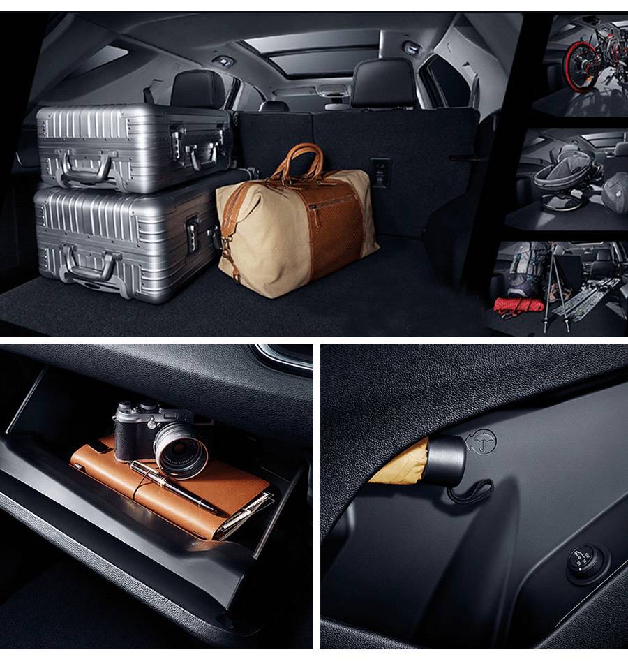 5座结构给后备箱留有充足空间,二排座椅放倒后构造出最大1505L的后备箱容积。全车28处储物空间也很好地兼顾到了多样化储物需求。