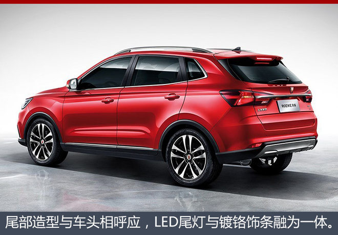尺寸方面,新车的长宽高为4,408*1,804*1,651毫米,轴距为2,625毫米。新车侧身与荣威RX5十分相似,相比荣威RX3的车身线条更加丰富立体,也多了些运动时尚了风格。车尾方面,尾部造型与车头相呼应,层次分明富有立体感,LED光源尾灯与镀铬饰条融为一体,保险杠底部配有银色护板装饰。