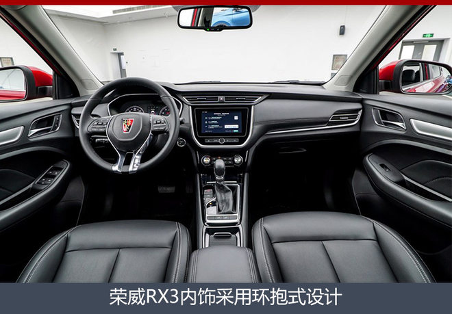内饰方面,荣威RX3内饰采用了环抱式设计,大量软性材质包裹搭配缝线工艺,豪华感油然而生。8英寸中控屏区域配有U形镀铬条,搭配两侧中控台上的皮质包裹,看起来具有一定的档次感。