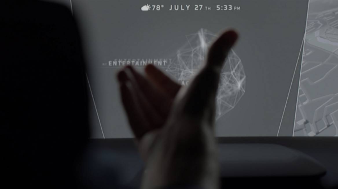 (拜腾概念车的1.2米大屏幕,可以通过手势进行操作,就像钢铁侠里面那样,足够炫酷了吧!)