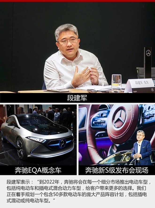 拥有131年历史的梅赛德斯-奔驰品牌一直是汽车行业发展的领军者。面对目前市场的变化以及电气化的发展的加速,奔驰也将率先实现转型,继续践行全新的“C.A.S.E战略”(瞰思未来)。段建军表示:“到2022年,奔驰将会在每一个细分市场推出电动车型,包括纯电动车和插电式混合动力车型,给客户带来更多的选择。我们正在着手规划一个包含50多款电动车的庞大产品阵容计划,包括插电式混动或纯电动车型。”