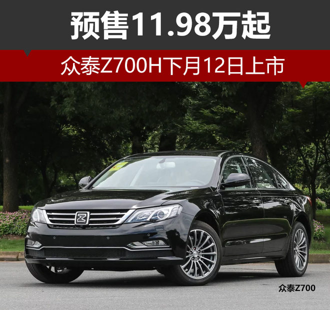 Z700H是众泰旗下中大型车,由现款Z700更名而来,并已于此前正式公布预售价11.98万起。网通社从众泰官方获悉,Z700H将于10月12日正式上市。新车在外观上采用三横幅镀铬格栅,两侧大灯造型犀利,且内部配有斜置双LED日间行车灯;新车内饰造型大气,中控配有悬浮式显示屏,彰显豪华感。动力方面,Z700H将搭载1.8T发动机。
