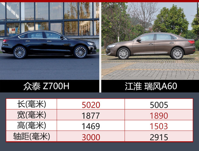 根据数据显示,众泰Z700H长宽高分别达到5020*1877*1469毫米,轴距达到3000毫米;相比同级别车型江淮瑞风A60,新车除了宽度和高度低于后者,长度和轴距占有一定优势。