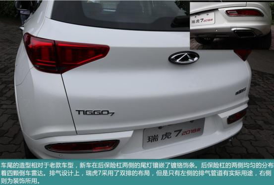 新款瑞虎7为年度小改款车型,在细节方面进行了升级。此次实拍的车型为奇瑞新瑞虎7 1.5T自动豪华版。