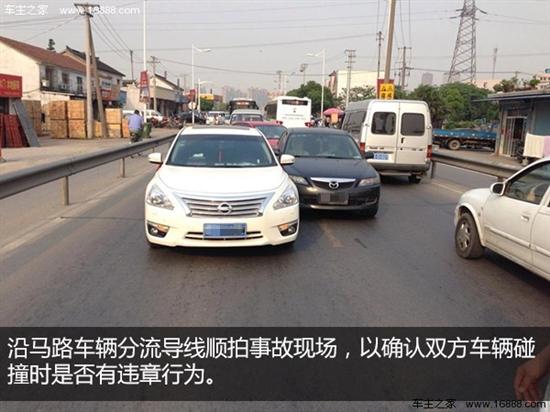 3。拍摄双方车辆与马路车流分割线的位置