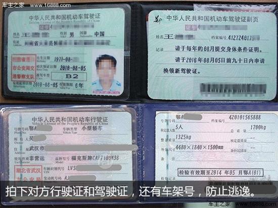 拍照目的:保留对方证件照片,以及车辆车架号照片,以免对方车辆手续有问题或者之后出现逃逸的状况。