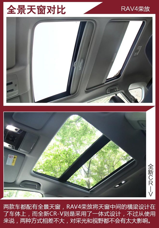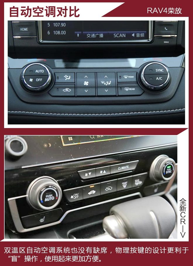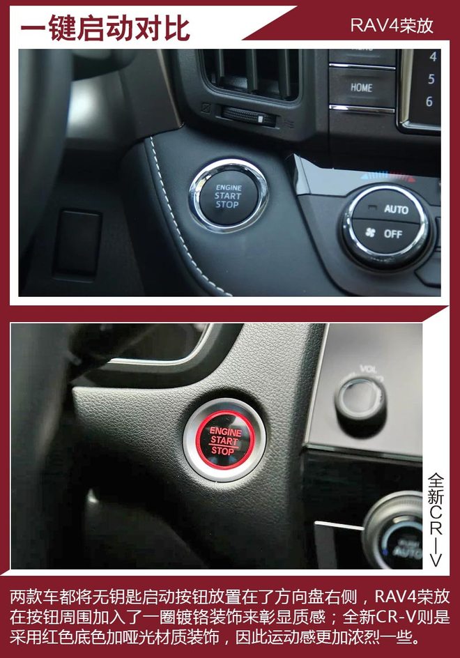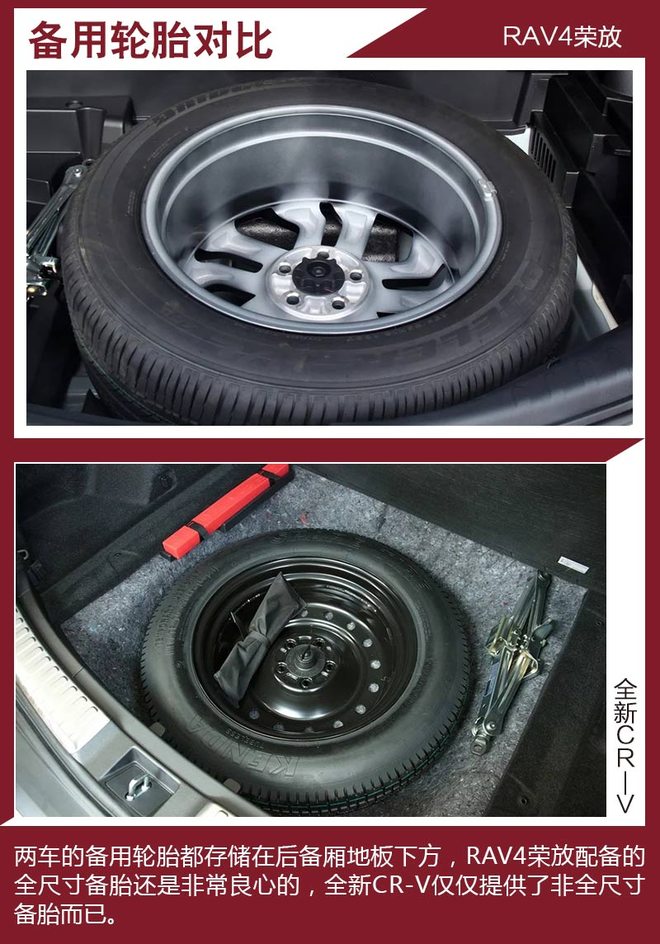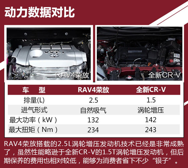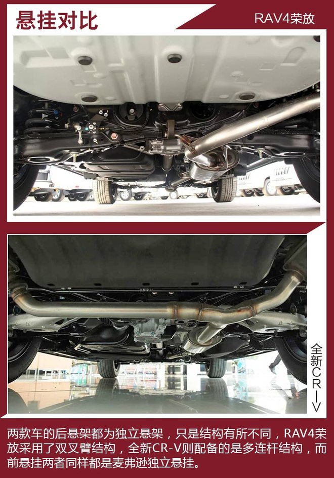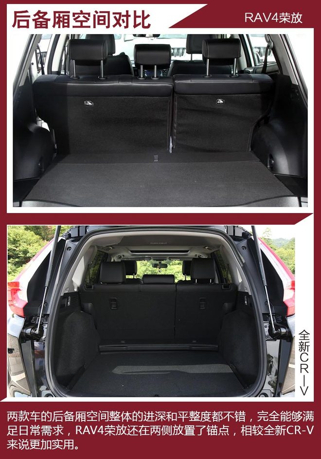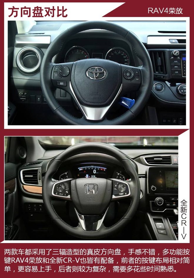 对比车型上,我们选取了拥有相对丰富配置,能够体现各自优势的车型进行对比,分别是一汽丰田RAV4荣放 2.5L 自动四驱精英版。本田全新CR-V 240TURBO 自动四驱尊耀版。