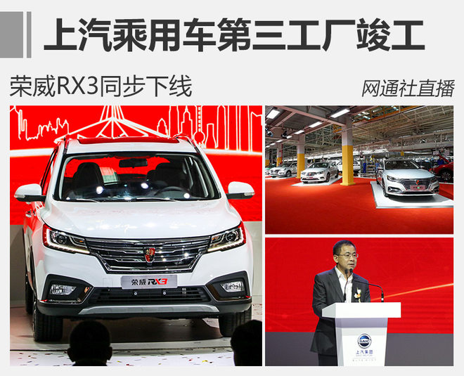 上汽乘用车此前宣布第三工厂正式落户郑州,将投产荣威、名爵品牌的互联网以及新能源车型。网通社从上汽乘用车官方获悉:上汽乘用车第三工厂一期工程正式竣工,新工厂全面投产后可实现年产能36万至40万辆。同时,荣威全新互联网SUV——RX3同步下线,新车定位紧凑型SUV,外观采用“律动设计”理念,并配备“斑马智行2.0”系统,将于11月正式投放市场。