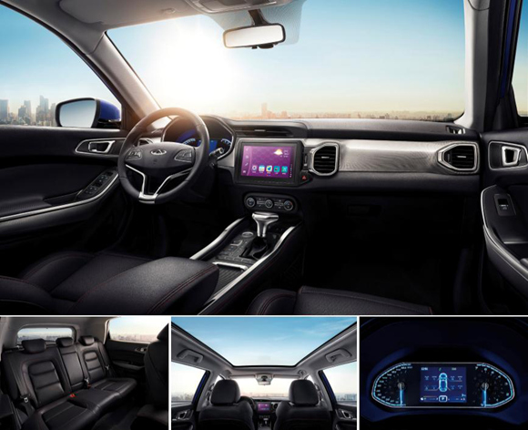 在整车尺寸上,瑞虎5x整车达到4338mm*1830mm*1645mm,新车轴距超越合资车型,达到同级最长的2630mm;空间上,瑞虎5x在座舱设计上,最大化的进行了优化,带来宽大驾乘空间;在内饰用料上,新车采用了豪华车上才有的高位副仪表台设计,搪塑软质彰显超越同级的精致与奢华感,4.8吋彩色TFT行车电脑显示屏、Hydrographics智感中控饰板等质感配置均提升档次感;而独特的非对称出风口设计,更符合人机工程学原理;全车人机工程座椅由澳大利亚著名研发团队设计;鸥翼式多功能真皮方向盘,握感舒适透气,且更具质感;在舒适性上,瑞虎5x对怠速噪声和行驶噪音的控制水平、车内语言交流清晰度均超越合资水平。