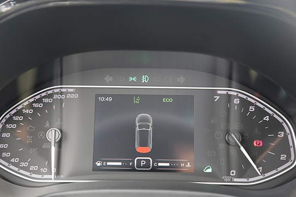 多功能方向盘左侧为行车电脑控制键和定速巡航设置键,右侧为多媒体、语音快捷键。仪表盘中央为液晶行车电脑,可显示日常车辆信息。