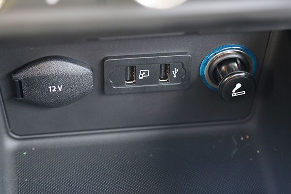 控制区域的下方配备了两套USB接口和12V的点烟器插座,这在多个设备同时需要用电时较为方便。