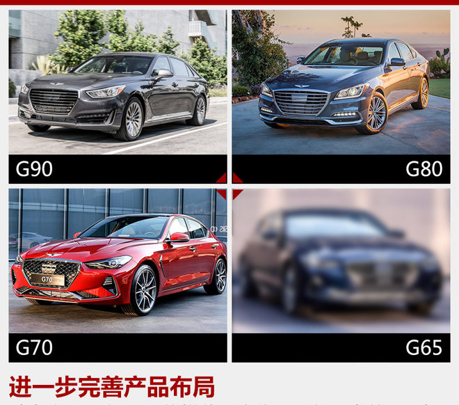 目前,在捷恩斯品牌的产品序列中已有G90、G80、G70三款轿车产品,覆盖了大型、中大型、中型等细分市场。其中,G90和G80车型已经于2016年上市,G70车型于今年9月份在韩国首发,预计将于明年正式投放市场。继G70车型之后,捷恩斯还将进一步完善产品布局,推出一款紧凑型轿车,并有望采用上述“G65”这一命名。