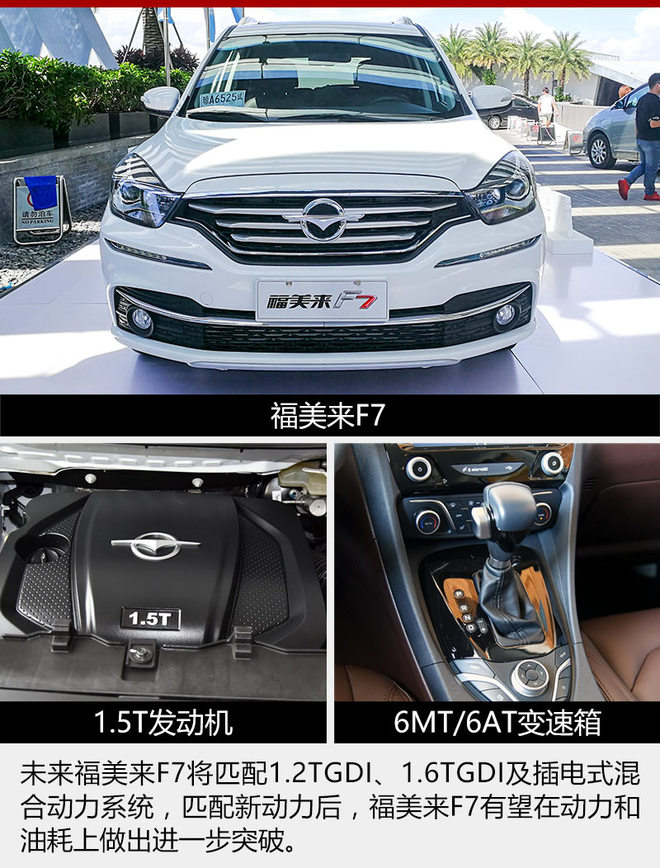 福美来F7采用全新造型设计,是集合轿车级安全、舒适、操控,MPV大空间的全新车型。在动力上,福美来F7配备一台1.5T涡轮增压发动机。据李伟胜透露,未来福美来F7还有计划增加匹配1.2TGDI、1.6TGDI以及插电式混合动力系统的车型,满足消费者的多种需求。