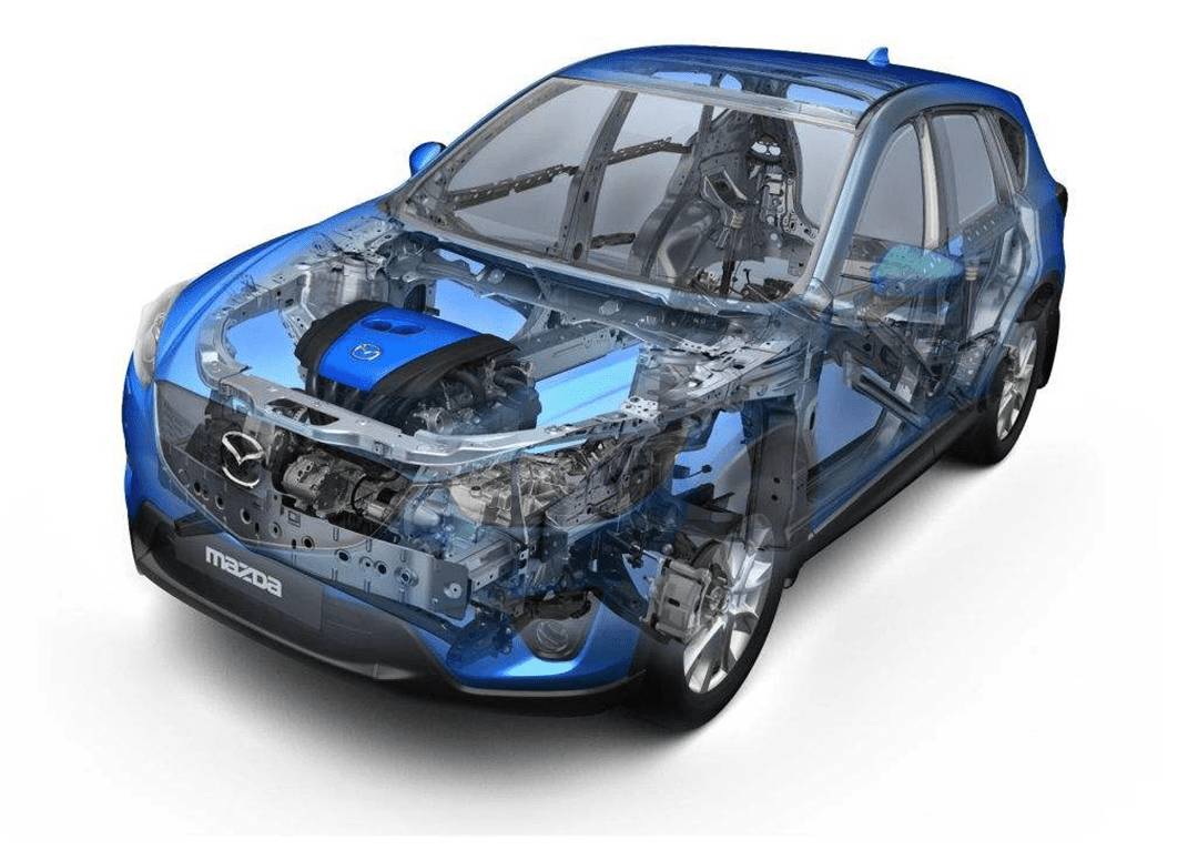 马自达创驰蓝天技术:“我对发动机、变速箱、底盘、车身进行优化,增加了压缩比,提高了引擎的燃烧效率,更有利于节油。”