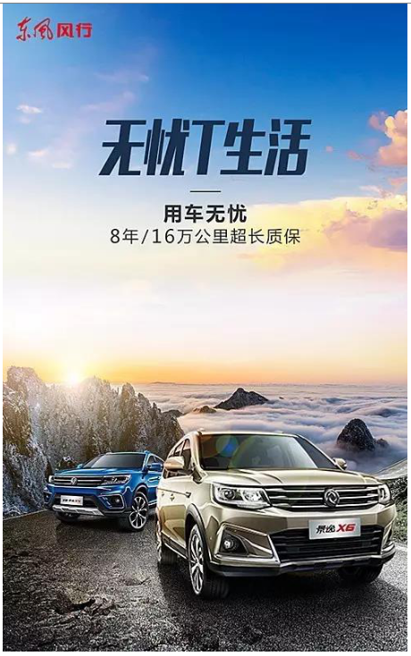 比如东风风行景逸“双T”车型——全新景逸X5 1.5T和景逸X6,在售后上都提供8年/16万公里超长质保政策,无论你去哪儿,都能为你一路保驾护航,用车无忧。
