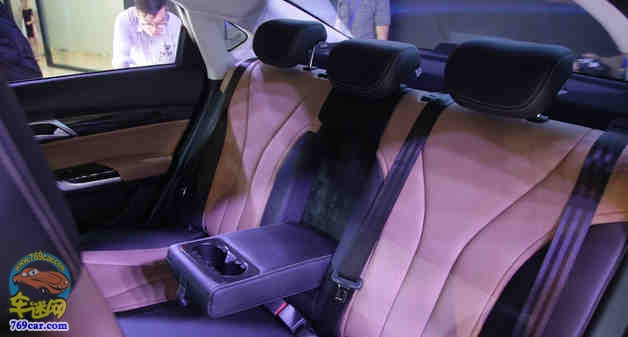 中控台层次感十足,采用“T”字型布局,面板为仿碳纤维材质,中央有圆形空调出风口,功能划分清晰。扶手箱、车门把手等经常触碰的位置采用了皮质包裹,用料相当不错。