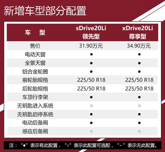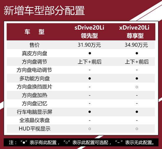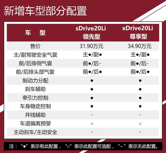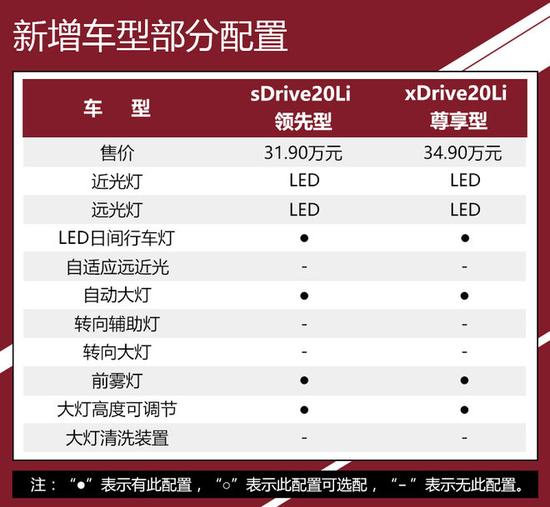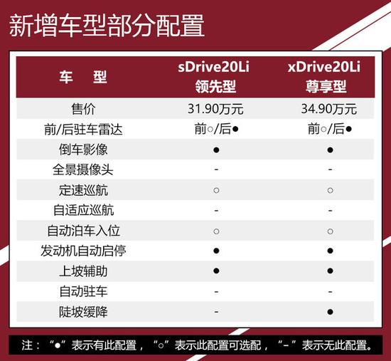这次增加的两款车型均为搭载2.0T发动机的车型,和2016款相比这次新增加的车型解决了两个问题:首先2018款 sDrive20Li 领先型把2.0T的价格门槛拉低至31.90万元,在之前这个价格你只能买到2016款 sDrive18Li 豪华型,对动力有要求的消费者显然得不到满足,随着2018款 sDrive20Li 领先型的推出这个问题迎刃而解。第二,对于那些想买四驱型号的消费者来说之前最起码要选择2016款 xDrive20Li 豪华型才有四驱系统,而它的价格达到38.50万元,2018款 xDrive20Li 尊享型的推出一下子把价格降低到34.90万元,称得上是实力圈粉。