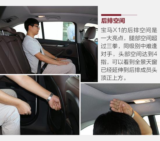看过车身尺寸数据你也能感受到宝马X1之大,和同级别对手相比除了宽度比奥迪Q3少20毫米之外,另外三项数据都远超对手,特别是轴距,这也是它的后排能获得三拳有余的腿部空间的重要原因。