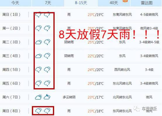 不出意外的应该是8天假期了。但是这两天连续噩耗来袭,8天假期有7天都在下雨!雨雨雨雨~