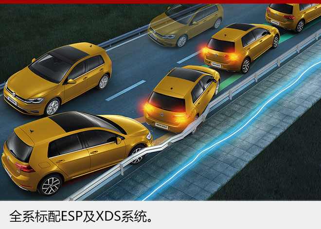 另外配备的预碰撞安全系统能够确保用户在遇到紧急情况时主动刹车;新增后视摄像头与盲点监测功能,能够有效避免因视线盲区引发的交通事故。除了上述科技装备,新高尔夫还全系标配了ESP及XDS系统,保障车内驾乘者的行车安全。
