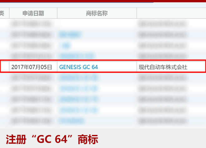 现代汽车此前推出了全新的高端子品牌—Genesis,旗下G90、G80、G70都已陆续上市。在此基础上,Genesis还将不断扩充产品阵容。网通社从国家工商总局商标局了解到:现代自动车株式会社注册了“GC 64”商标,未来将被用为车辆的命名。根据Genesis公布的产品规划,“GC 64”有望被用于一款双门轿跑车的命名。